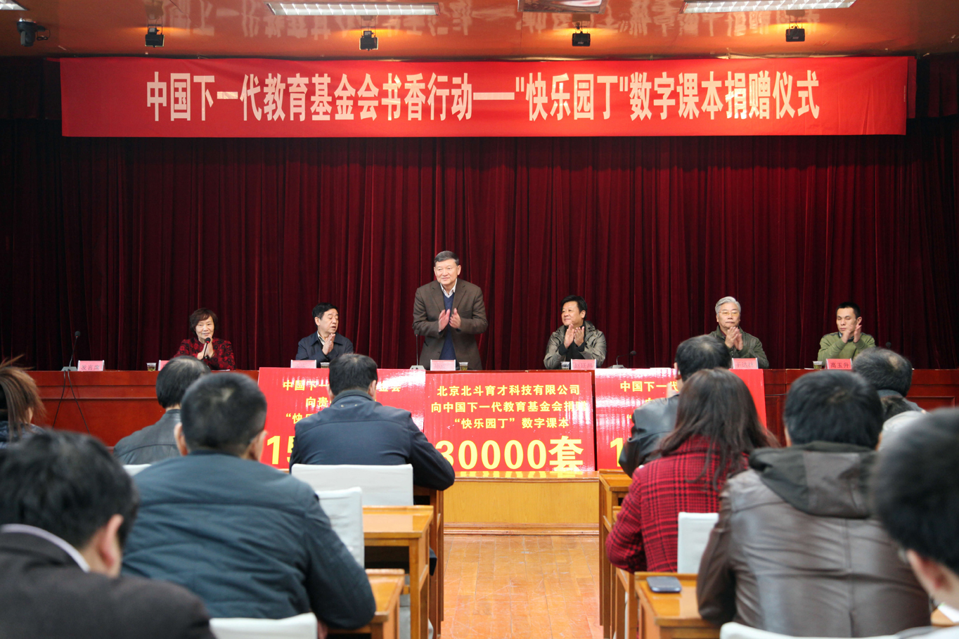 按照《国家中长期教育改革和发展规划纲要(2010-2020年)》要求,为加快教育信息化的步伐,促进义务教育均衡发展,实现优质教育资源共享,中国下一代教育基金会联合北京北斗育才科技有限公司向贵州、云南两省中小学捐赠价2940万元的“快乐园丁”数字课本30000套。2013年11月29日在贵州省贵阳市隆重举行了捐赠仪式。