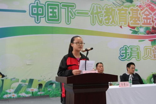 ……乡下的孩子,并没有被遗忘!遥远的蓝天下,有人一直把我们牵挂!在这一刻我真切感受到祖国大家庭的温暖,我们会让爱的种子在心灵深处生根、发芽、开花,一定不辜负社会的关爱和希望,好好学习、天天向上!”受益学生代表满怀深情的真切感谢中国下一代教育基金会低碳教育基金为他们送来低碳礼包。